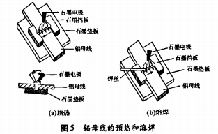 (8)焊工施焊時(shí),焊工頭戴面罩,一手拿焊絲一手拿石墨碳棒,不斷地將現(xiàn)已生成的氧化鋁清出熔池。
