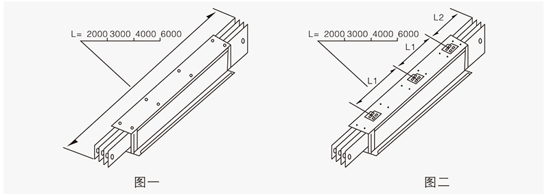 B.帶分接裝置的直線型母線單元,每段設有分線口,與插接箱配套使用,以分配電力負荷,分線口的數量及位置由用戶設定。見圖二