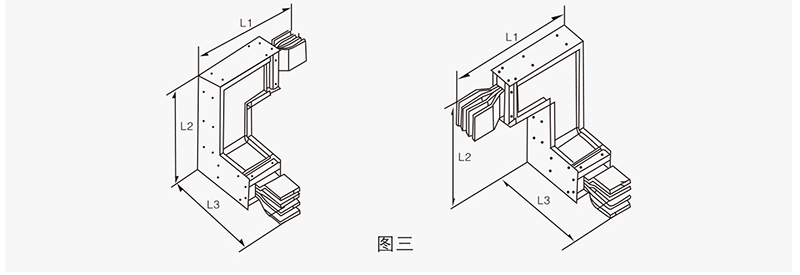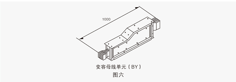 變容母線主要用于同一系統中不同額定電流單元的連接,以使整個母線槽系統更加經濟實用。其標準長度為1000mm,也可根據用戶要求定制尺寸。見圖六