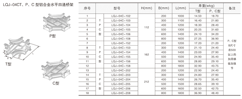 LQJ-04CT、P、C型鋁合金水平四通橋架